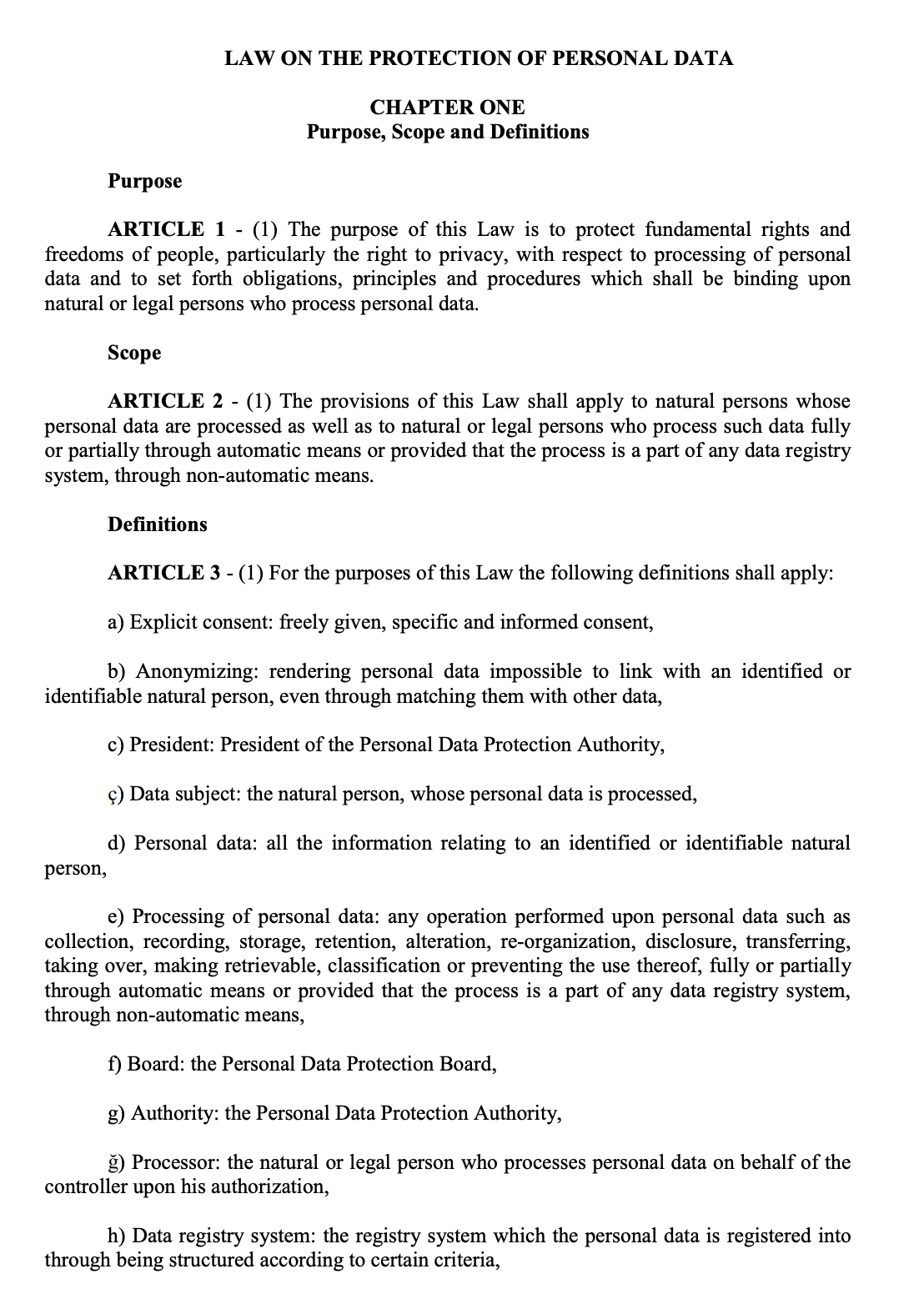 Law On The Protection Of Personal Data