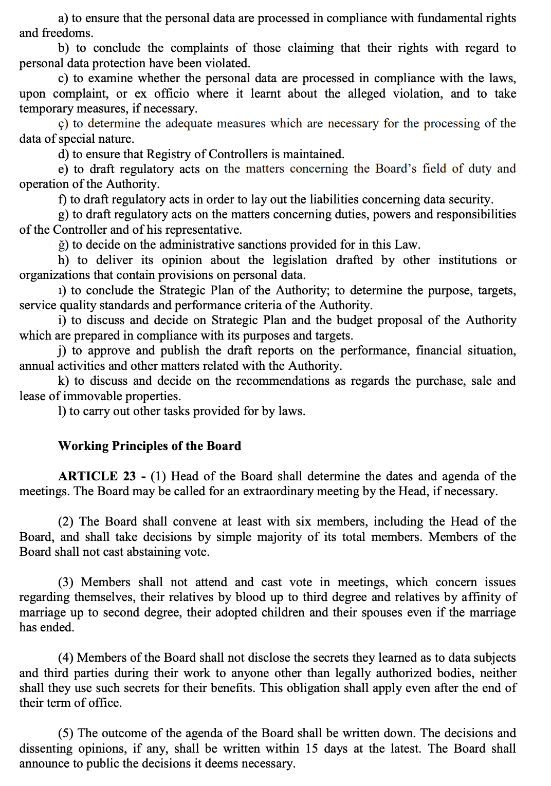 - Acting in compliance with the relevant legislation and the regulations of the Personal Data Protection Board in the transfer of the personal data to the third persons in line with the requirements of the processing purpose