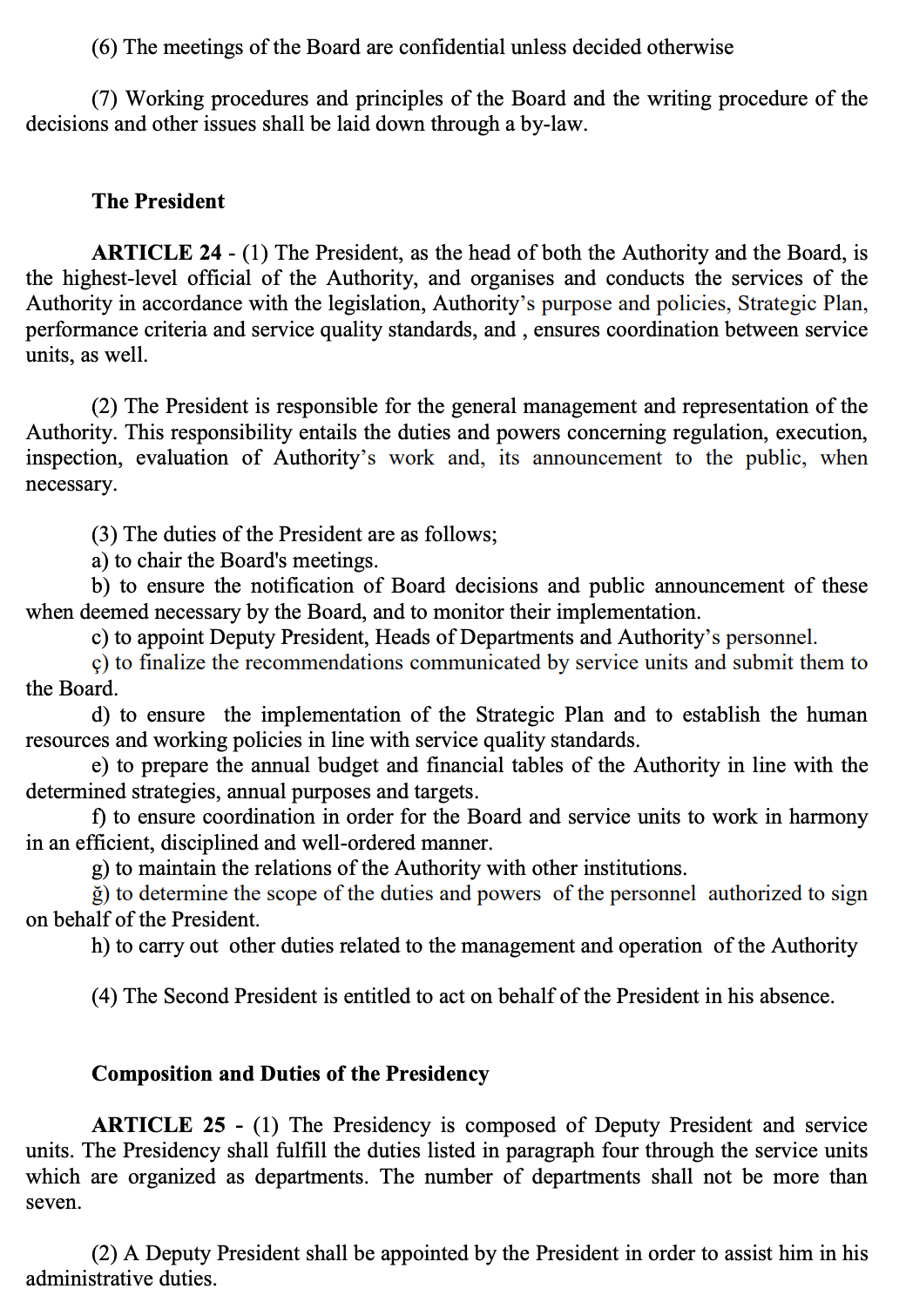 - 3.1.3.1. In order to manage the works regarding the protection of the personal data within the body of the Company “the Personal Data Protection Committee” was established. The committee members are composed of the Chairman of the Board of Directors, Director of the Presidency Oice, Legal Consultant, Human Resources/Administrative Aairs Director and Inspection Systems Director. The president of the committee is the Legal Consultant. At the meetings in which the Chairman of the Board of Directors participates, the Chairman of the Board of Directors presides the meeting.