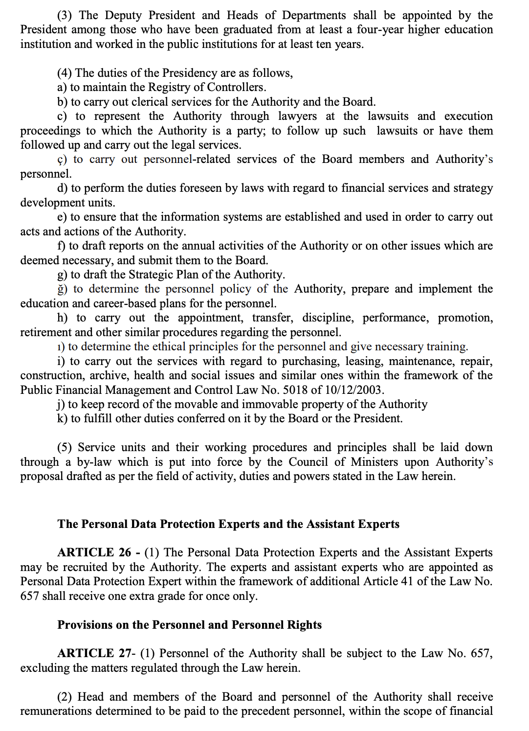 - To determine the issues required to be performed for ensuring the compliance with the Personal Data Protection Law and the relevant legislation and to submit them to the senior management for approval,