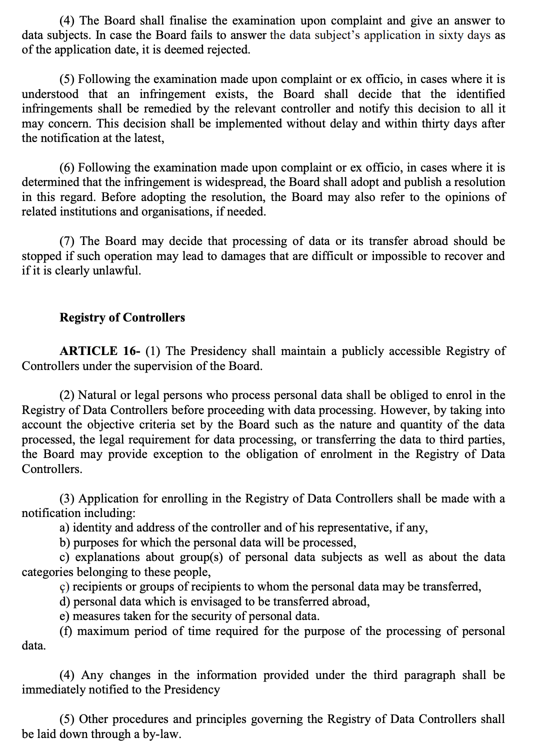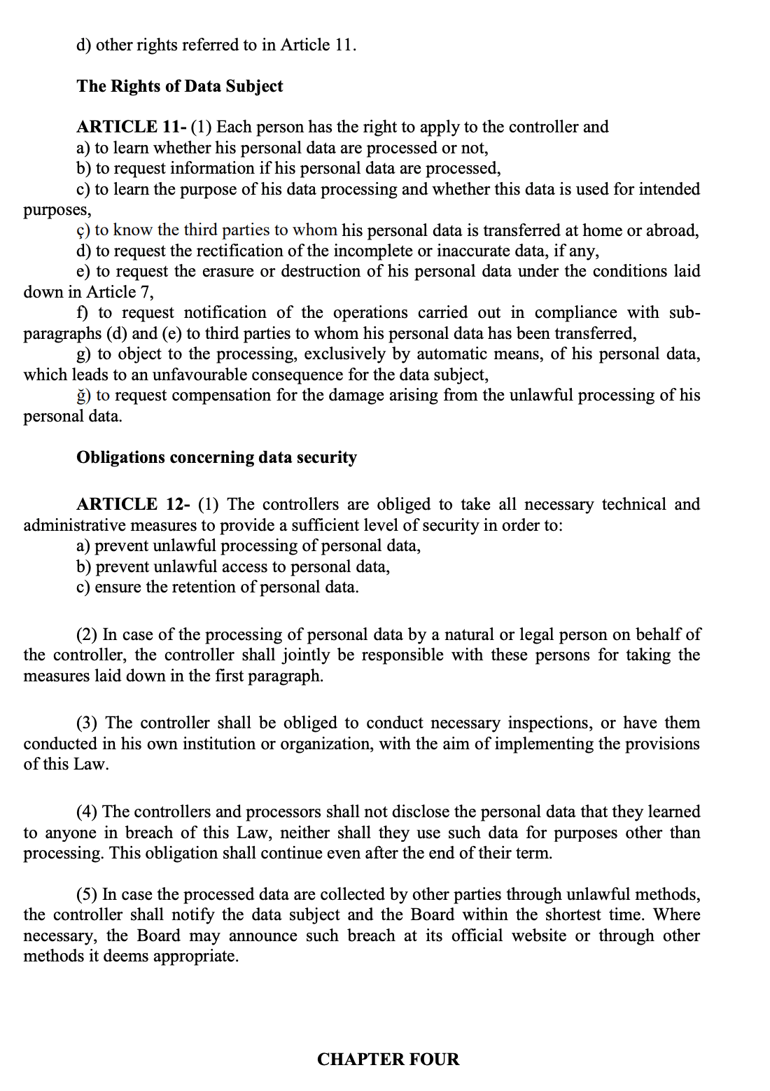 - 3.6.2.3. If the processed personal data is obtained by others by illegal ways, the Data Supervisor shares the situation with the Committee simultaneously and then forwards it to the Personal Data Protection Board within the shortest period of time.