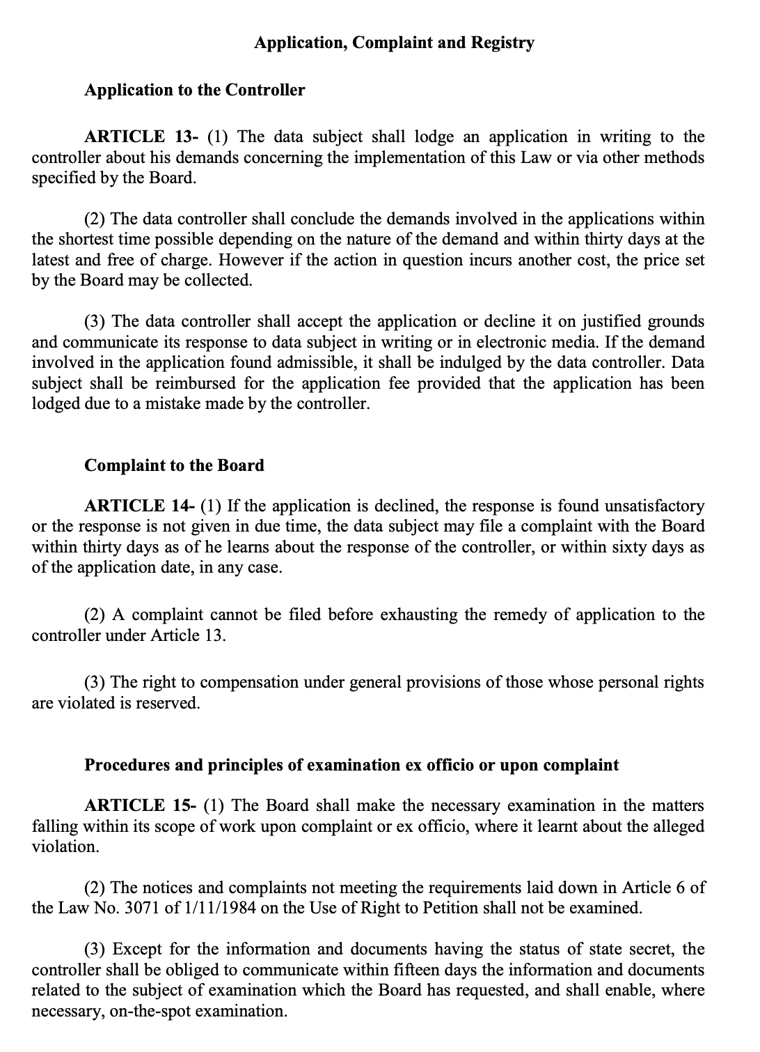 I kindly request that my application that I made to ADOPEN is evaluated pursuant to the Article 13 of the Law and information is given to me via the electronic mail address that I state above in line with the requests that I specify in this application form.